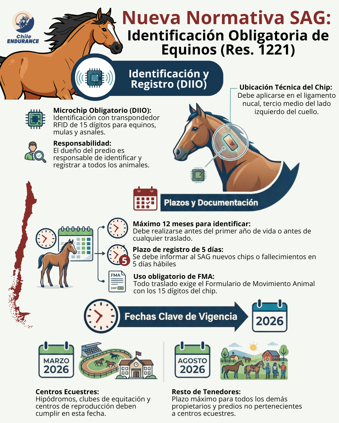 - Microchips antiguos: Si tu caballo ya tenía un chip antes de esta ley, tienes 30 días desde que entre en vigencia para informarlo al SAG y validarlo como oficial.